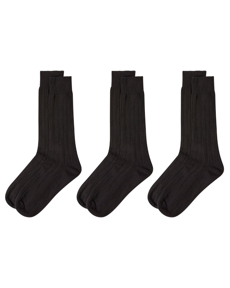 Our classic black men's wide ribbed crew socks receives a fitting update with the added benefit of a seamless toe, making these one of the most comfortable pair of dress socks you'll own. A must-have addition to your top drawer; these super-soft, everyday crew socks offer generous stretch and durability, and come in a convenient 3-pair pack.