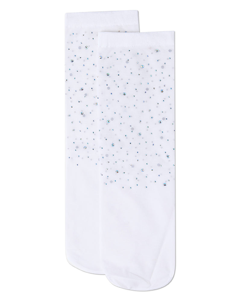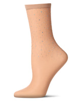 Women's All-Over Rhinestone Studded Sheer Crew Sock