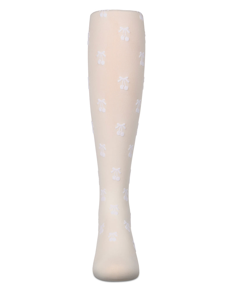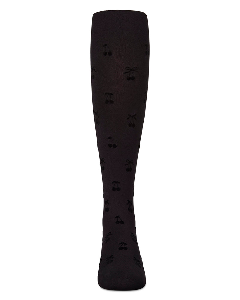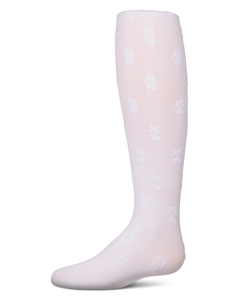 Treat your pretty little princess to these cherry-coded girls' tights. They're silky-soft for all-day comfort, opaque for cozy coverage, and infused with extra stretch for flexible custom fit. To top it off, they're adorned with charming flocked cherries for the latest vintage vibe.