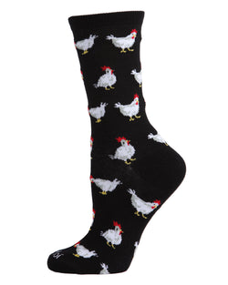 Why did the chicken cross the road? Hopefully because they were on your feet! Our Chickens Bamboo Blend Crew Socks provide all day comfort from our rayon from bamboo blend, made using the finest yarn and embroidered with an allover chicken pattern.