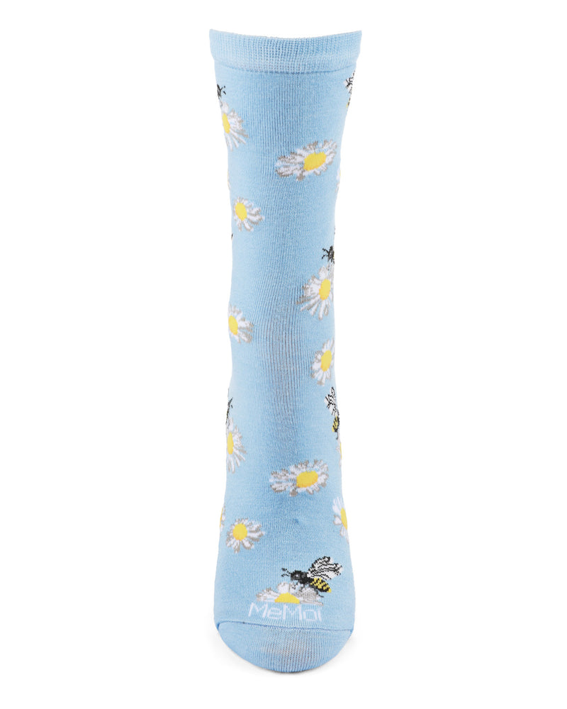 - These light blue socks are covered in bumblebees visiting daisies for a sweet springtime scene
