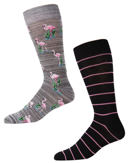 Men's 2 Pair Pack Flamingo Bamboo Blend Crew Socks