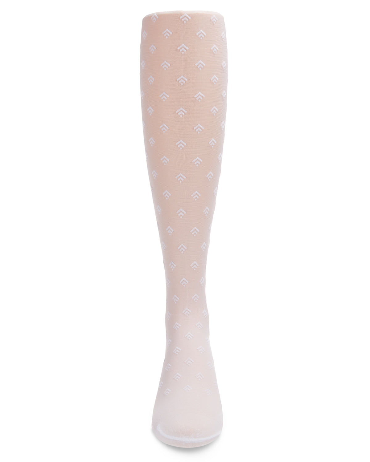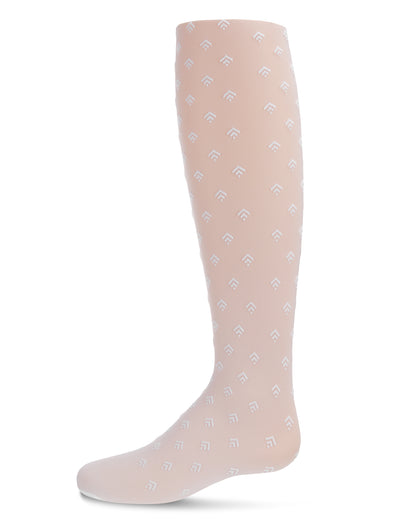 Comfy, cute, and perfect for your little girl. Our Flocked Arrow Tights are just the thing she needs in her wardrobe. Durable nylon yarns create a sheer finish that's perfect for school, parties, and playdates. Finely knit for a soft and smooth feel, with a comfortable elasticized waistband that won't dig or irritate precious skin. Lightweight fabric has added spandex that offers superior shape retention and less pilling for a flawless fit that moves with her.
