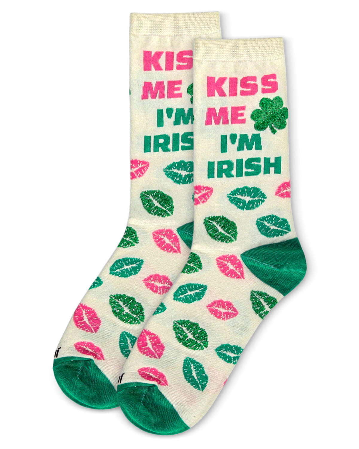 It's the luck of the Irish! What better way to ring in St. Patrick's Day with our fun and festive Women's Kiss Me I'm Irish Bamboo Crew Socks. Covered in pink and green kisses, these silly socks will be the hit of your holiday. Made with a super soft bamboo blend, you'll love them for their comfort as well as their quirky style!