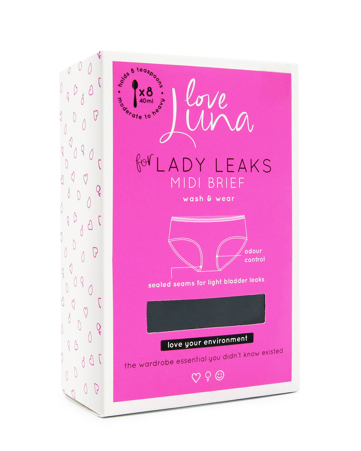 Forget wearing pads or pantyliners for bladder leaks. The Love Luna Lady Leaks Everyday Midi Brief provides a protective barrier so you don't risk leaking through your pants. If you happen to leak from coughing, laughing, sneezing, or lifting, these brief panties are able to absorb any moisture thanks to its five layers of protection. Not to mention, swapping incontinence products for this washable underwear is much better for the environment as you're creating less waste. These midi briefs are ideal for everyday wear and will feel as good as new after each wash.