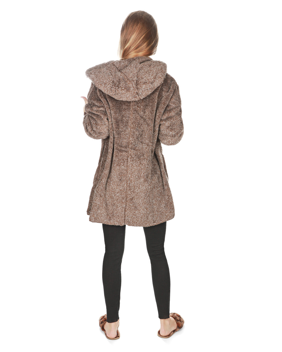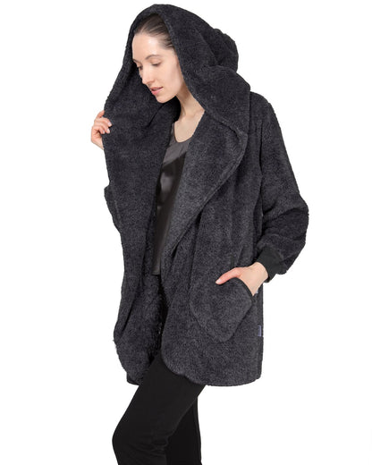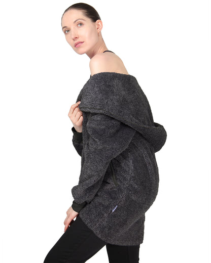 Women's Marled Plush Hooded Lounge Sweater with Shawl Collar