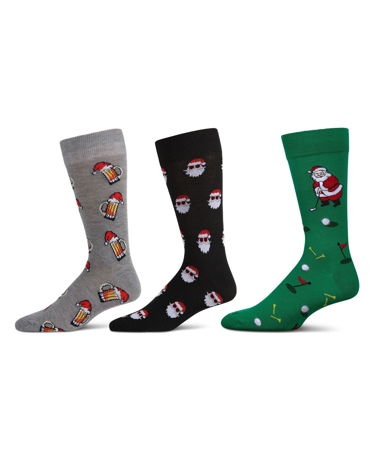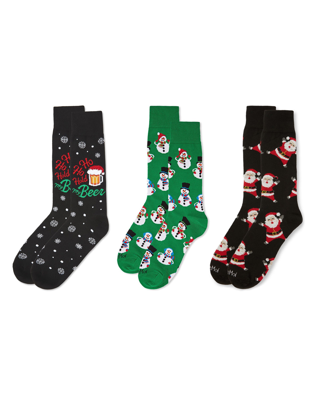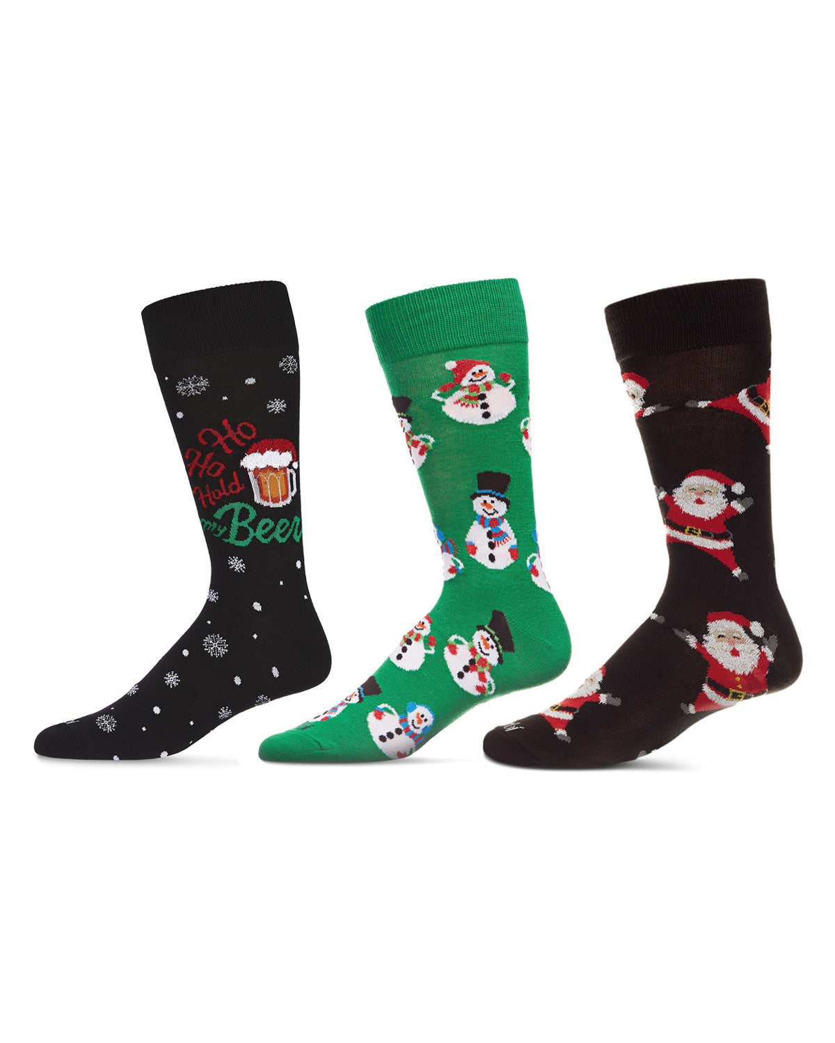 Look and feel Christmassy down to your toes with these festive men's novelty crew socks. They're as cozy as the season itself, thanks to their super-soft blend with flexible knit-in stretch. Plus, they're covered with holiday graphics — from Santas to sleighs to snowmen — knit right into the yarns for lasting color and clarity.