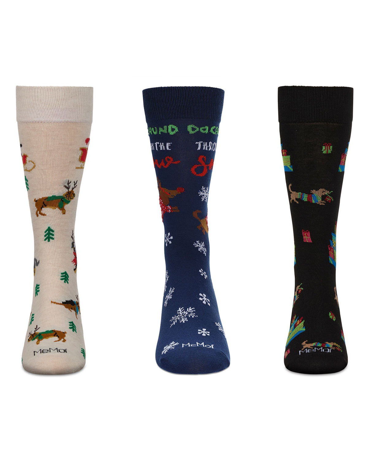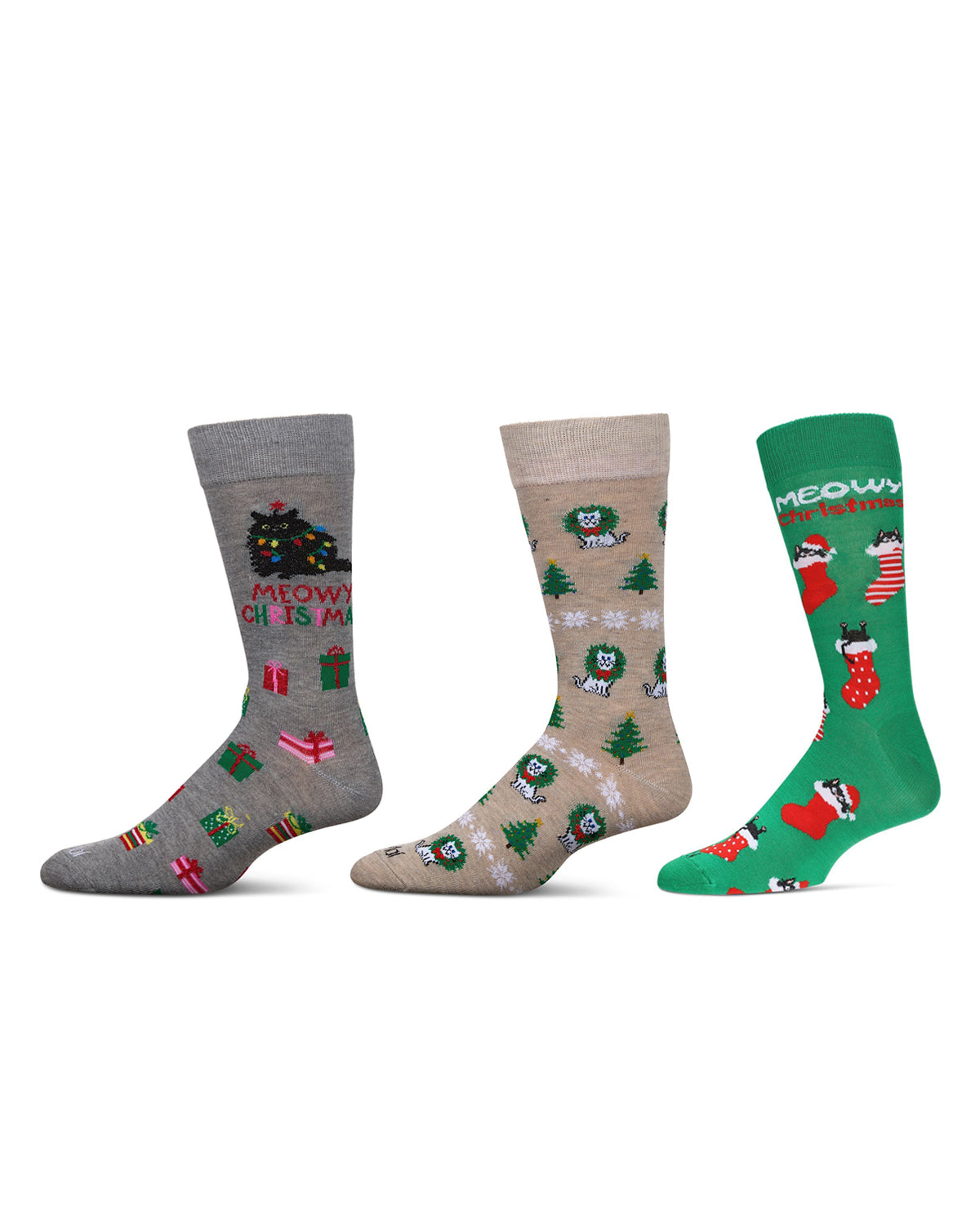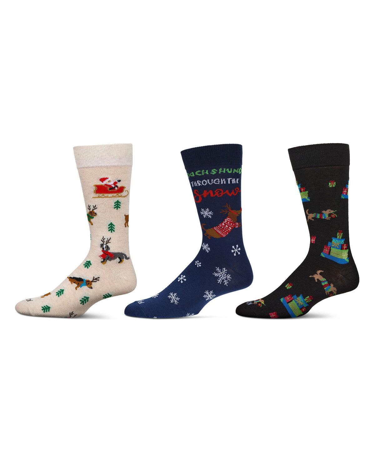 Look and feel Christmassy down to your toes with these festive men's novelty crew socks. They're as cozy as the season itself, thanks to their super-soft blend with flexible knit-in stretch. Plus, they're covered with holiday graphics — from Santas to sleighs to snowmen — knit right into the yarns for lasting color and clarity.