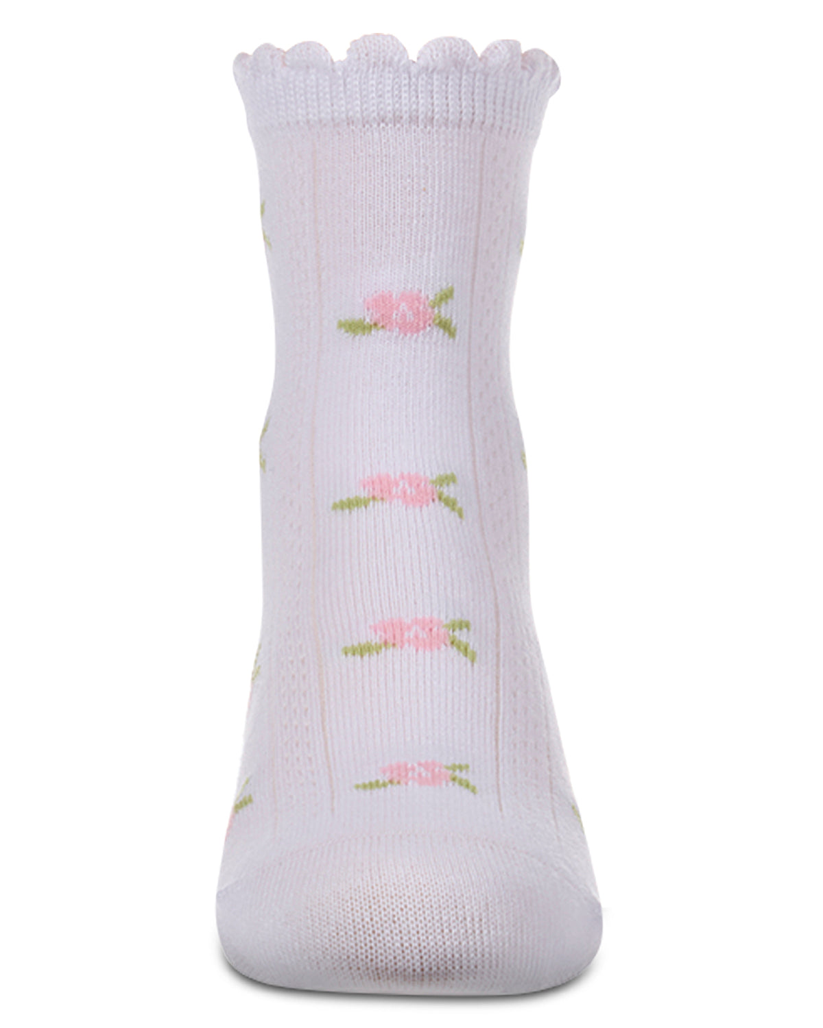 Girls Cotton-Rich Scallop-Trim Crew Sock with Mini-Floral Pattern