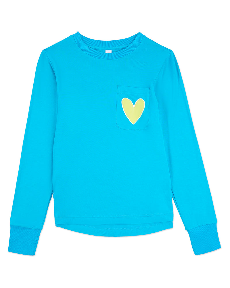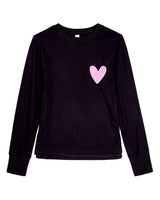 Girls Heart Graphic Trimmed Pocket Long Sleeve T-Shirt
