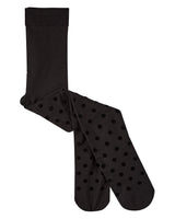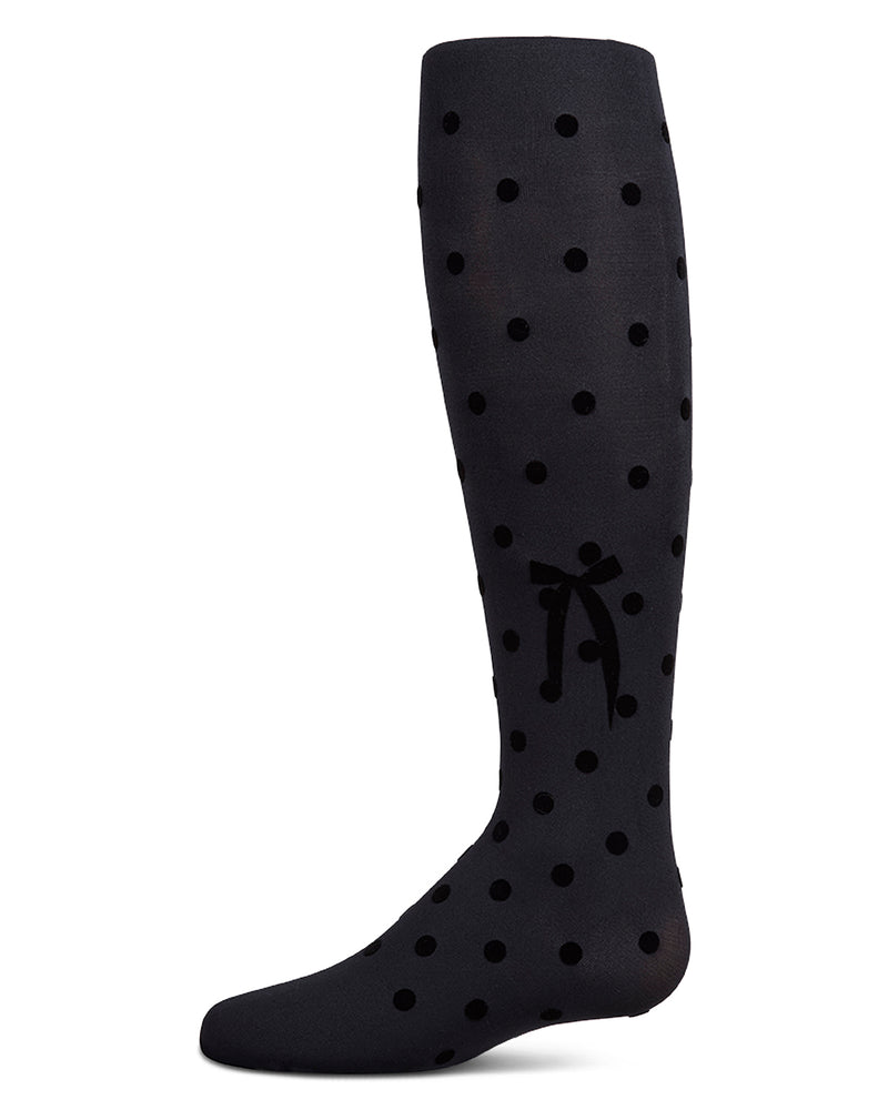 Girls Opaque Polka Dot Bow-Trimmed Flocked Tights