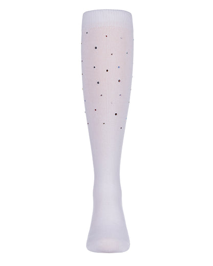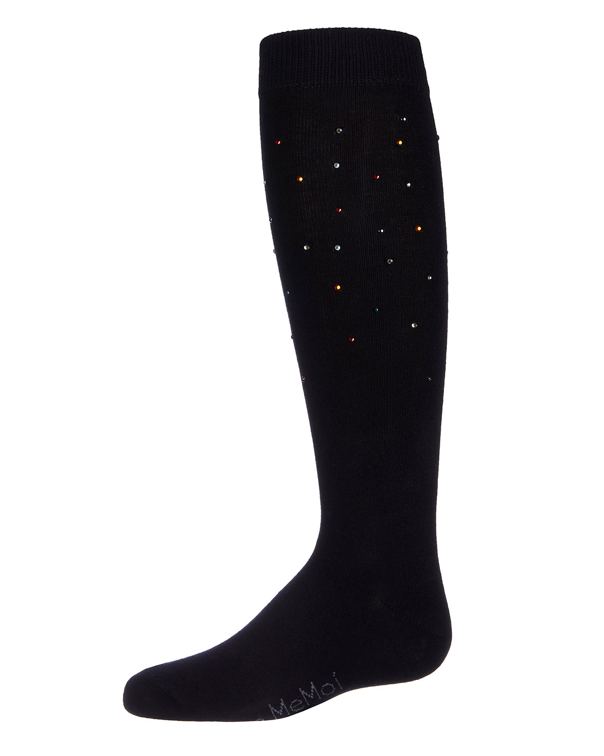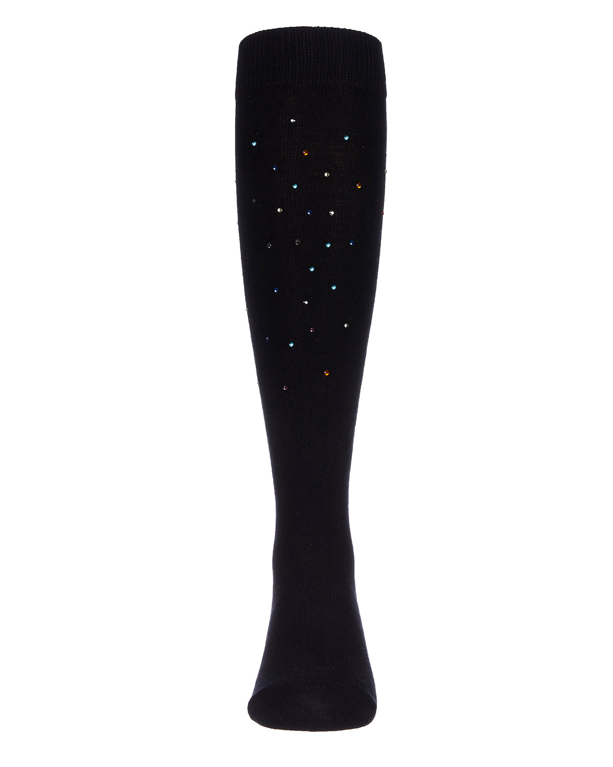 Only the best for your favorite girl, so have her try on a pair of our Multi Stone Knee Highs! These solid socks are finished with a soft, flat knit, and tons of tiny embellished faux-fur gems so she can glimmer and gleam with every step. Crafted from a soft and smooth cotton blend, with flexibility and generous stretch so her socks move with her. Added spandex for an ideal fit that offers superior shape retention and less pilling.