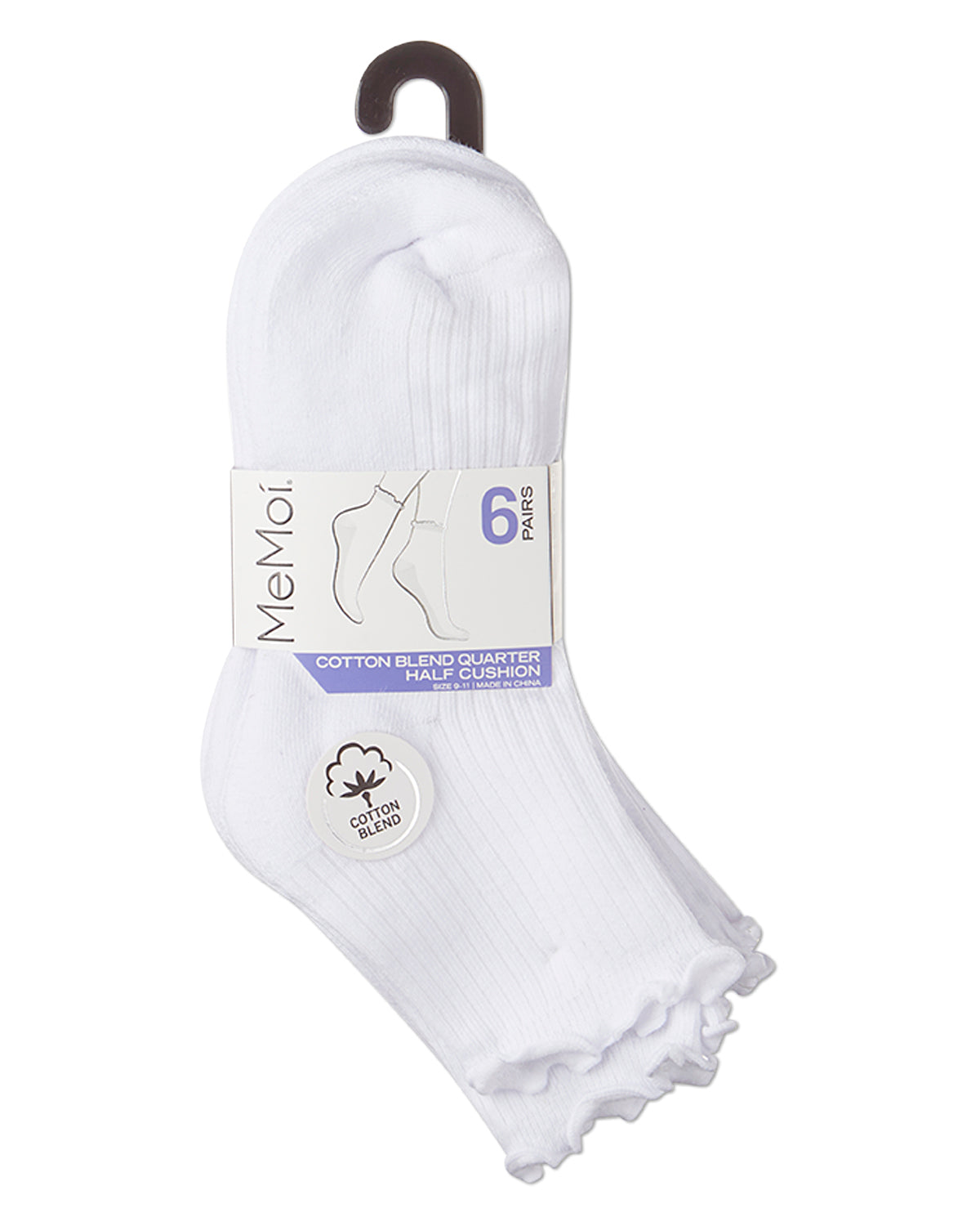 Feel free to wear these chic women's quarter socks with everything from cuffed jeans to pencil skirts. They're cotton-rich for soothing softness and rib-knit for flexible stretch, with spandex for shape-keeping fit, half-cushioning for all-day comfort, and pretty picot ruffles to top it all off (literally).