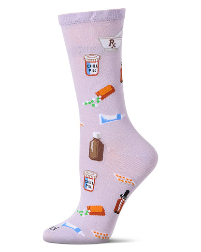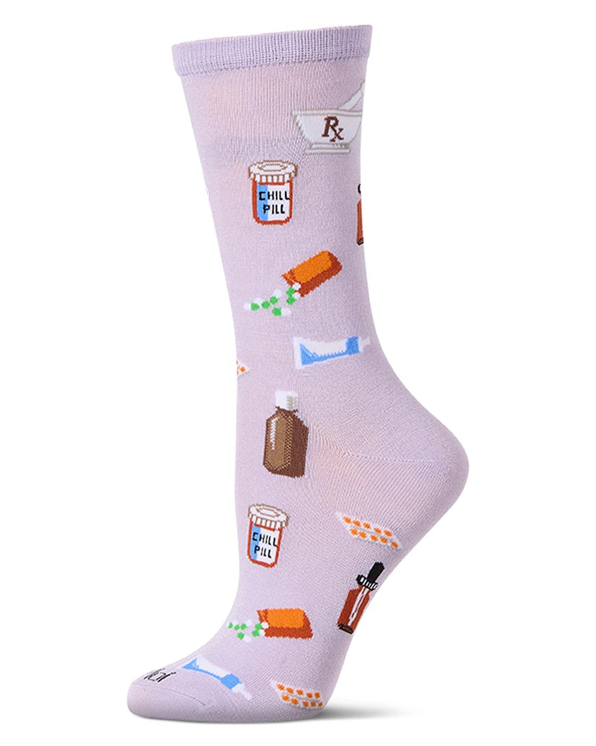 Women's RX-Themed Rayon Blend Novelty Crew Sock