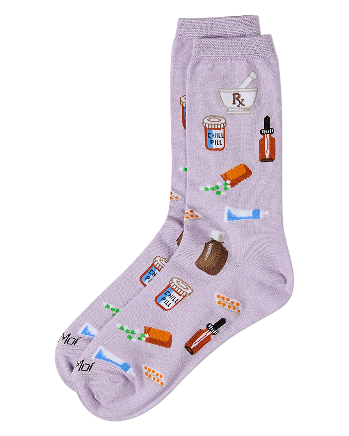 Do you work in a pharmacy? Or know someone who does? Celebrate the pharmaceutical profession with these women's novelty crew socks. They come in a breathable blend made with silky-soft plant-based rayon. And they're adorned with colorful graphics depicting pills, ointments, and more. Great gift for your favorite pharmacist.