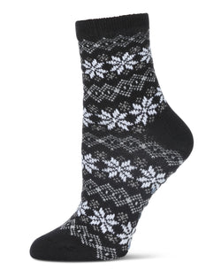 For lounging, relaxing, and a good nights sleep. Created with a thick acrylic knit on the outside and a buttery soft lining on the inside. Designed with a plush cuff and non-skid bottoms for a confident step.