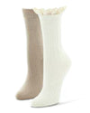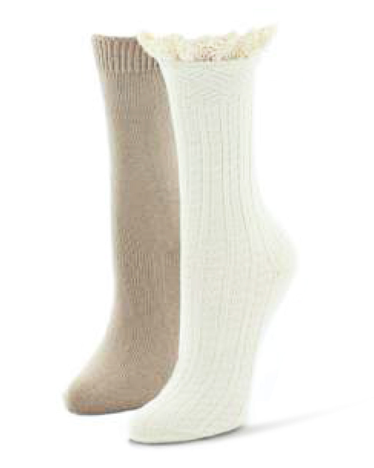 Our Sq Mix Boot Socks 2 Pack has a little bit of everything - a little femininity, a bit of basics, a whole lot of style. These boot socks are ribbed for cushion and comfort, with one sock sporting a lace fringe at the cuff and one staying plain Jane. Cotton fabric keeps your feet comfortable and cozy for a day full of fun.Â