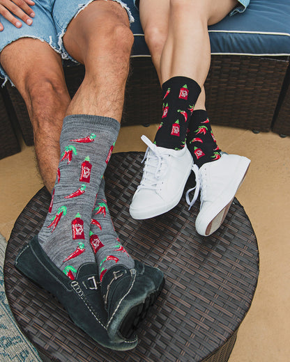 Get a little spicy with our Sriracha Crew Novelty Socks! We know that you, like our amazing bamboo blend, can take the heat. Show off your love for the muy caliente with socks featuring little bottles of sriracha, plus cute clusters of chili peppers. ??.
