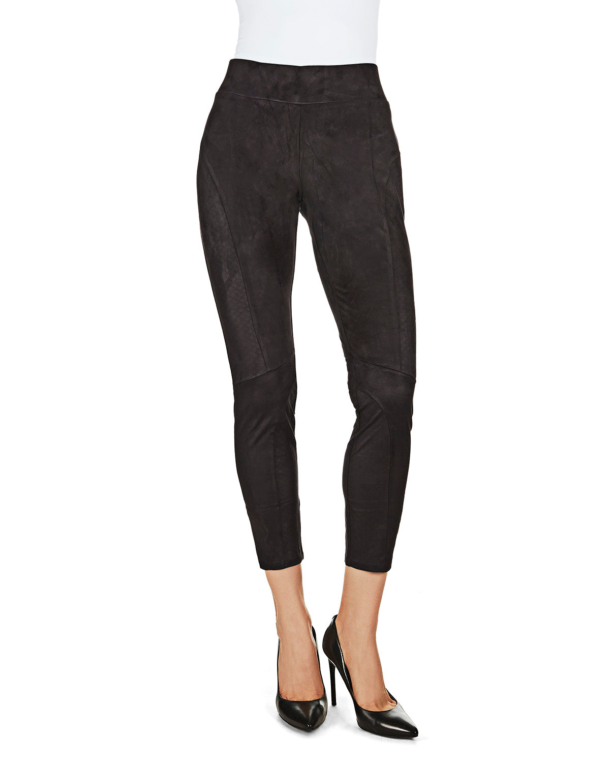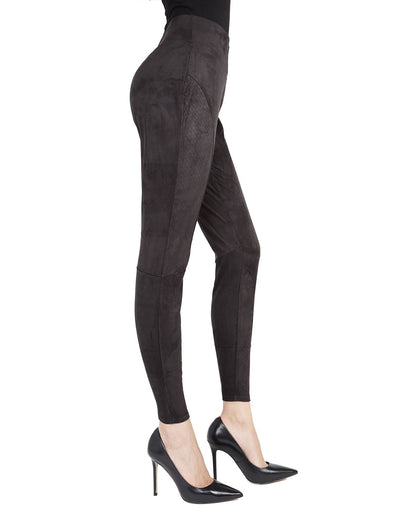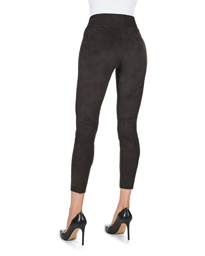 Memoi Vegan suede Feel Shaping Leggings are smooth in every sense of the word. High waistband and expert vegan faux leather construction slims your figure, while luscious suede-feel fabric adds depth and texture. Wear with your favorite blouse for an easy dressed-up look, or layer with boots and a skirt for something fun and funky.