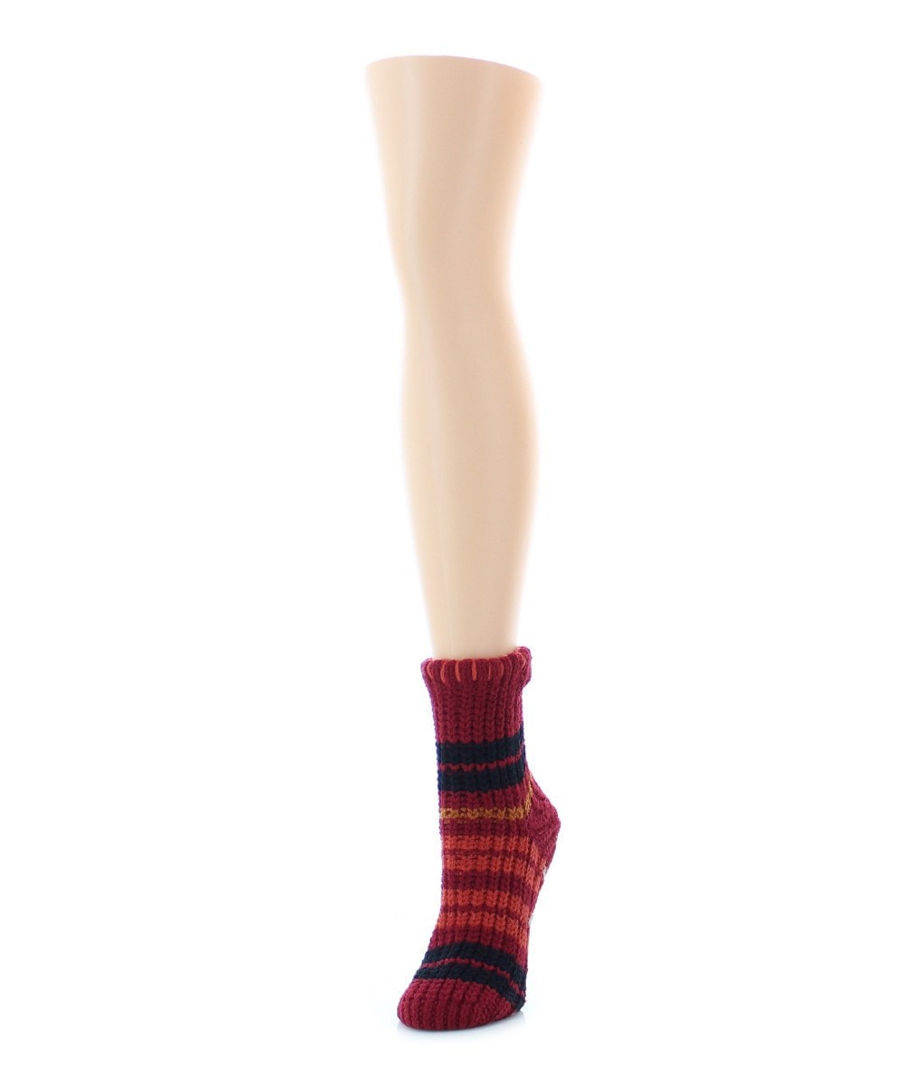 Women's Thin Stripe Chenille Non-Skid Slipper Crew Sock