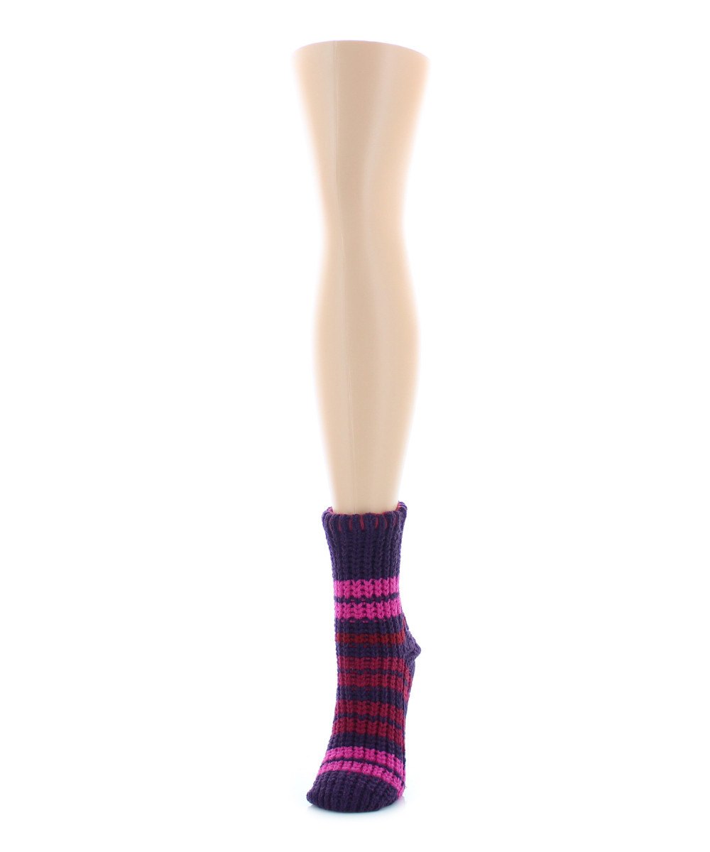 Our Thin Stripe Chenille Non-Skid Sock is simply covered in thin, stacked, multicolor stripes that show off your unique personality. Lined with super soft chenille, this sock is fit for both going out and staying in. A non-skid bottom grips hardwood floors to keep you safe. Acrylic fabric is super warm in colder temperatures.