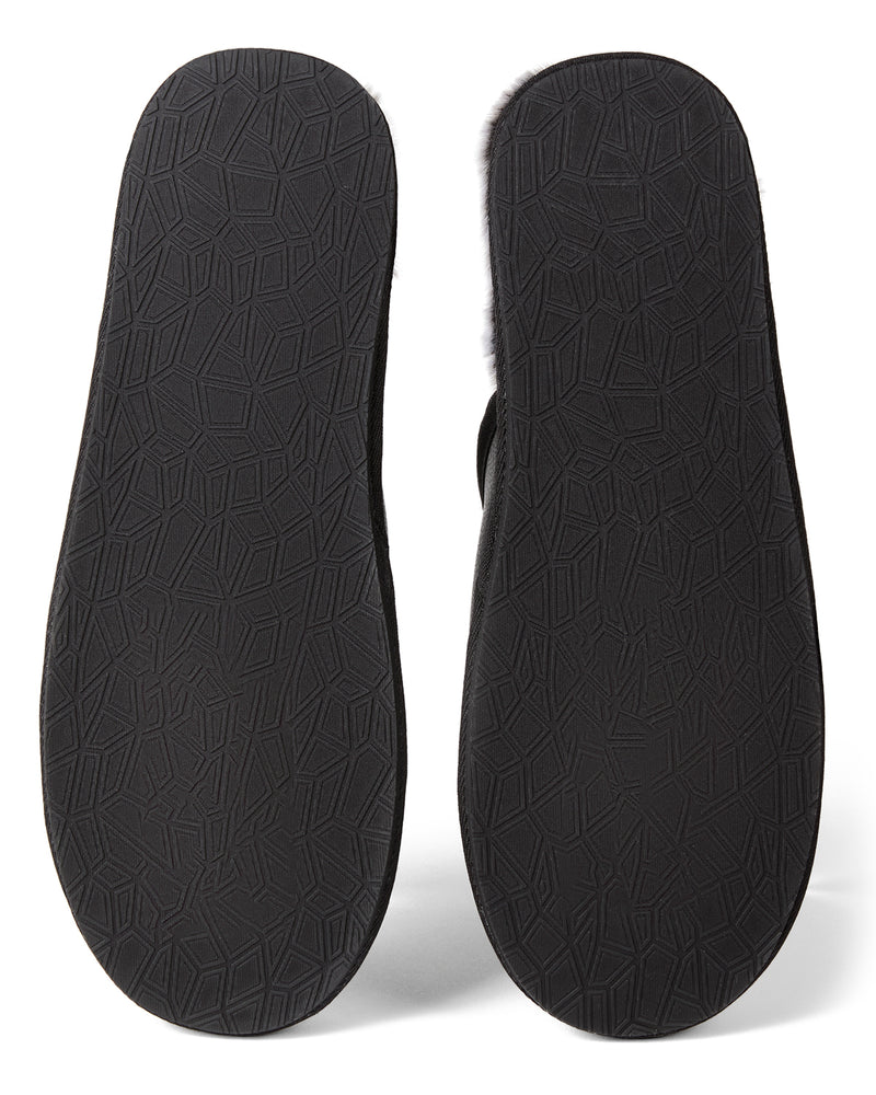 Sink your feet into these cozy men's slippers and you won't want to take them off. They're padded with plush faux fur for toasty warmth and soothing softness. And they feature a flexible TPR sole for shock-resistant cushioning. Result: unparalleled comfort at every skid-free step.