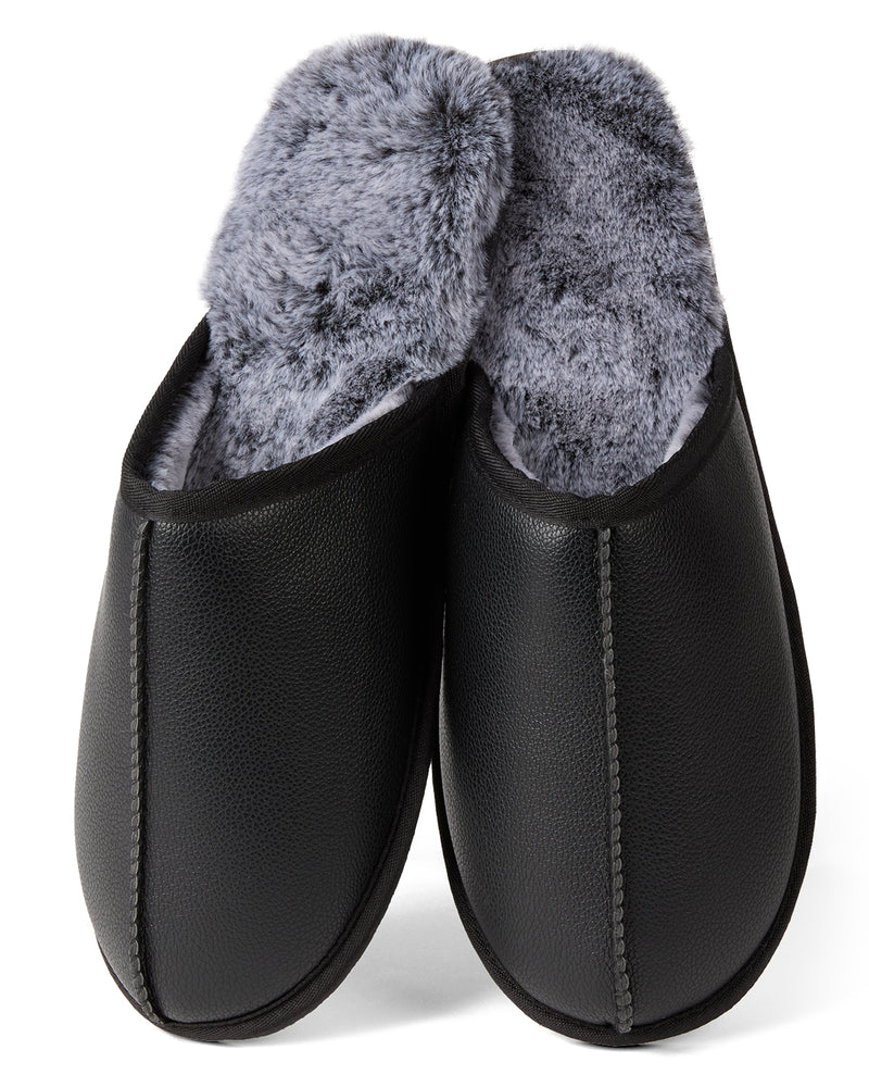 Men's Plush-Lined Vegan Leather Scuff Slipper