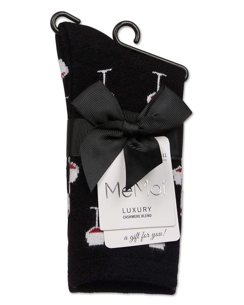 Love the finer things in life - like good wine and luxurious comfort? Slip your toes into these women's crew socks. They come in a skin-caressing blend featuring ultra-soft cashmere. And they're adorned with elegant wine-glass graphics, knit right into the yarns for lasting color and clarity.