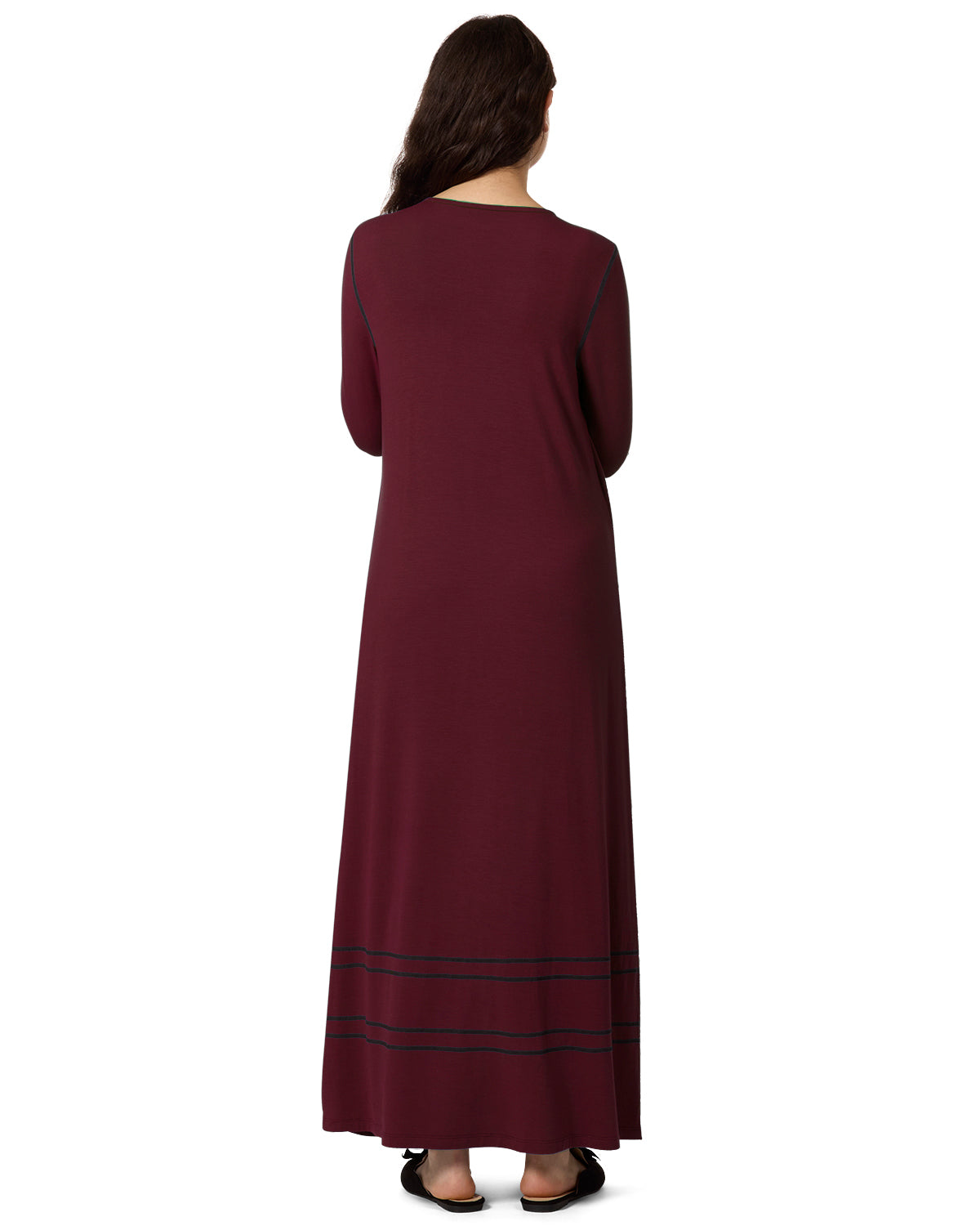 Women's Modal Blend Full-Length Nursing Gown with Decorative Stitching