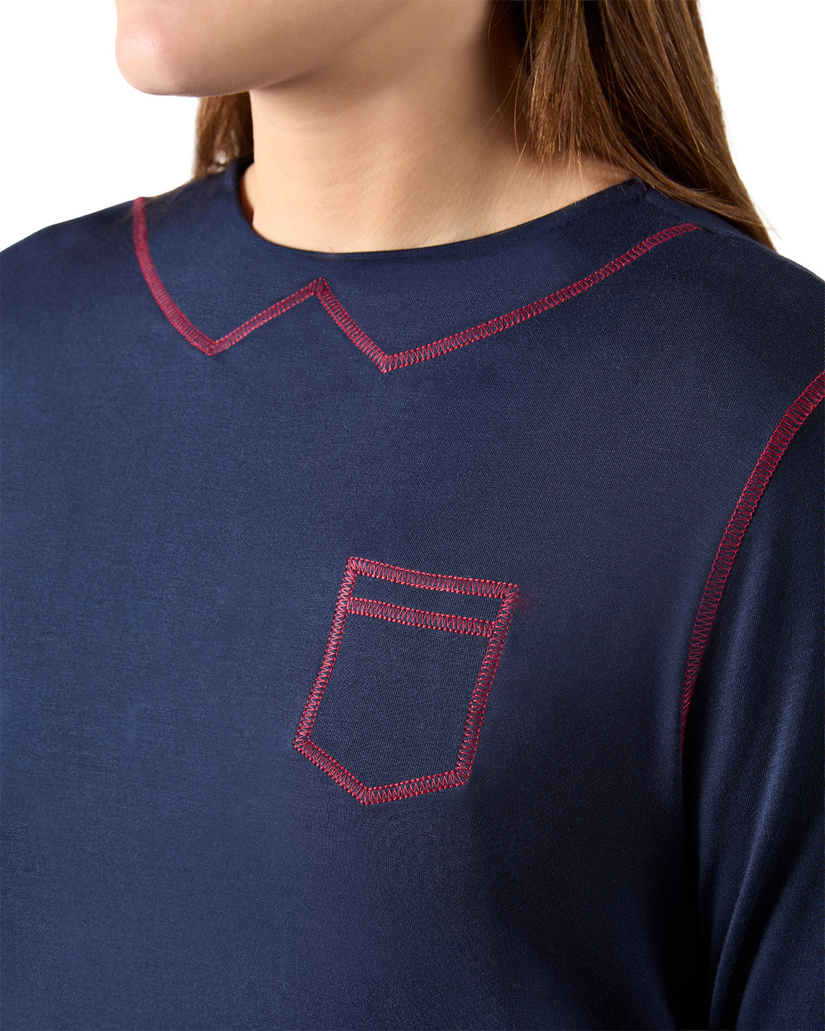 - Cute Contrast Stitching Outlines the Charming Faux Collar, Faux Pocket, and Decorative Stripes