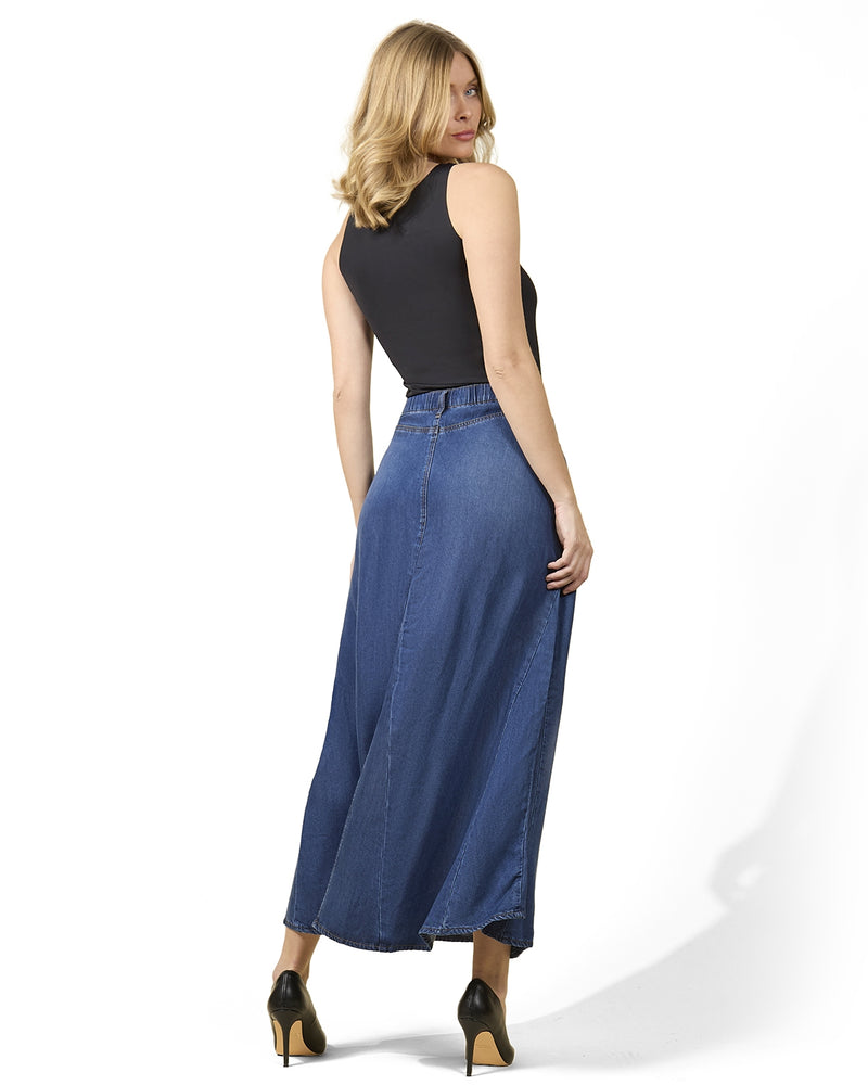 Women's Flared 4-Panel Lyocell Denim Maxi Skirt